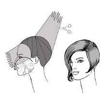 1. SECTION D – comb the entire hair toward the left hairline and cut diagonally from the corner of the nape to mid-ear; do the same on the right in order to obtain a central point. Now, cut the entire section scissors over comb, keeping the sides closer to the head and leaving length toward the center.