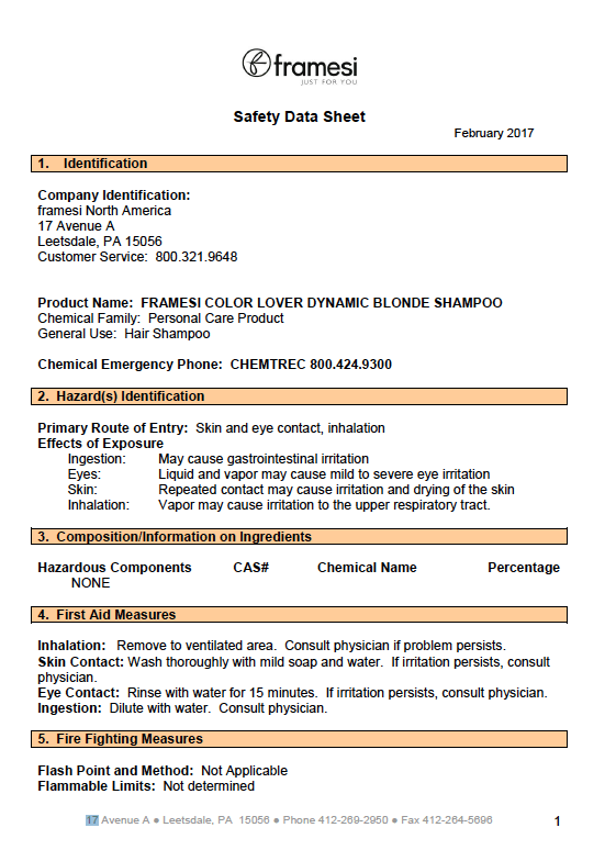 SDS FRAMESI COLOR LOVER FLASH DRY