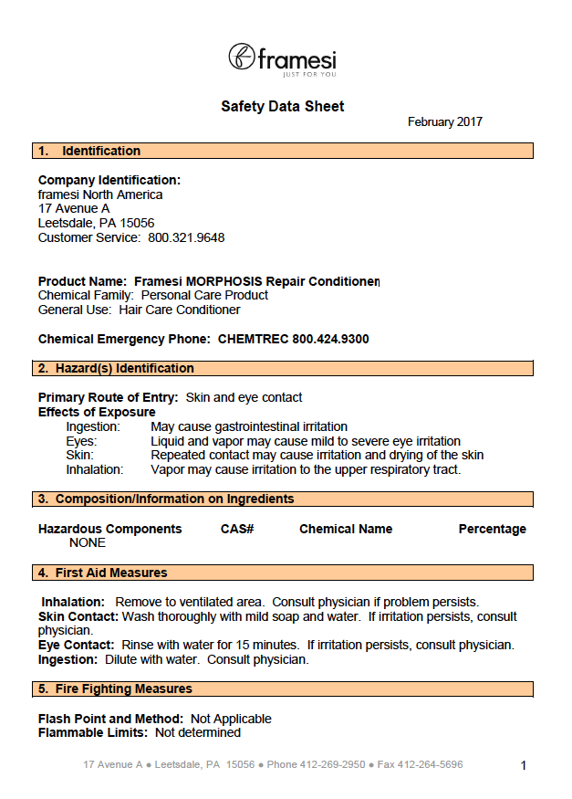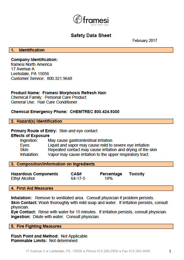SDS Framesi Morphosis Refresh Spray