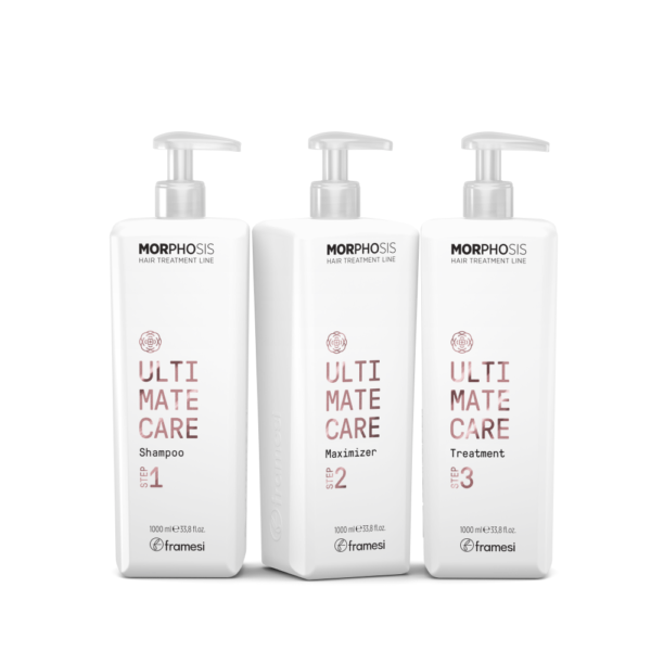 Concentrated Three-Step In-Salon Treatment that deeply hydrates, fills pores, closes cuticles, and smooths the surface of the hair. Its formula is enhanced with Fermented Peony and Hyalorice Extract disciplines and hydrates the hair fiber by carrying out a deep anti-frizz action. THE ULTIMATE CARE IN-SALON system consists of the following 3 products: SHAMPOO, MAXIMIZER, and TREATMENT. Get them all in this convenient Salon Kit.
