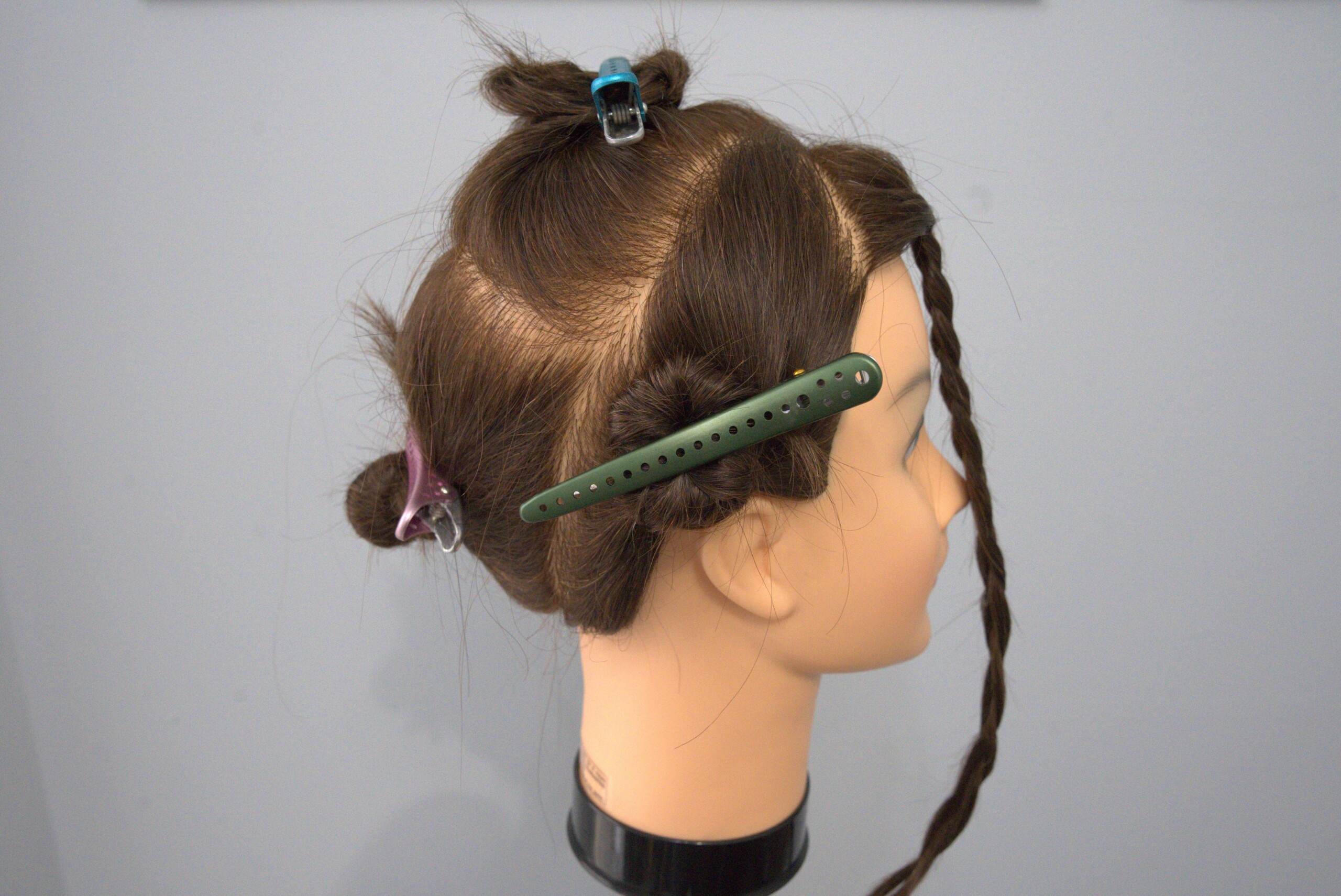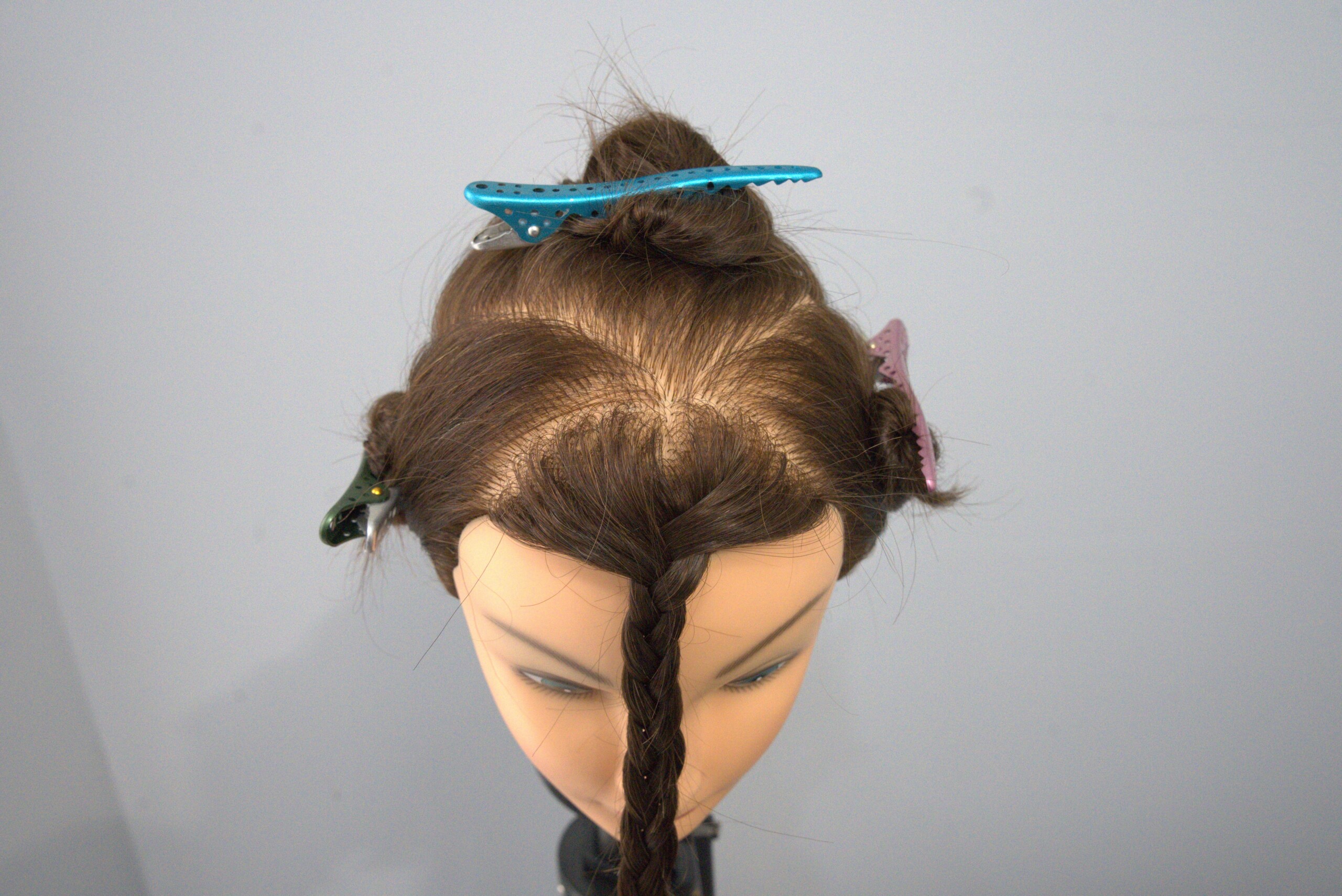 Section from the point of the triangle created in section 1, following the head shape, all the way to the middle of the nape, on both sides, creating a point there as well.